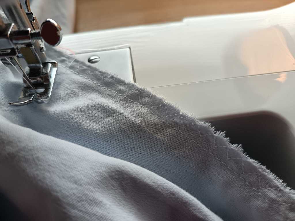 Olin ehkä vähän laiska ja ompelin ensin pelkällä suoralla ja molemmat osaset kolmiaskelsiksakilla. Mutta en keksi, miksi näin ei voisi tehdä. Säästin vähän lankaakin samalla.